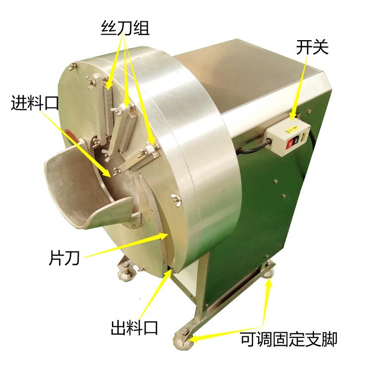 本机整机304不锈钢及铝镁合金制造,专业切姜丝机,切割速度快,切割能力强 ,一台机器有三个丝刀组,采用进口刀片及皮带,具备独有的自动润滑装置,切刀锋利,丝刀组跟料斗切面距离一致,刀面平衡、切丝均匀,本机结构紧凑、操作简便。