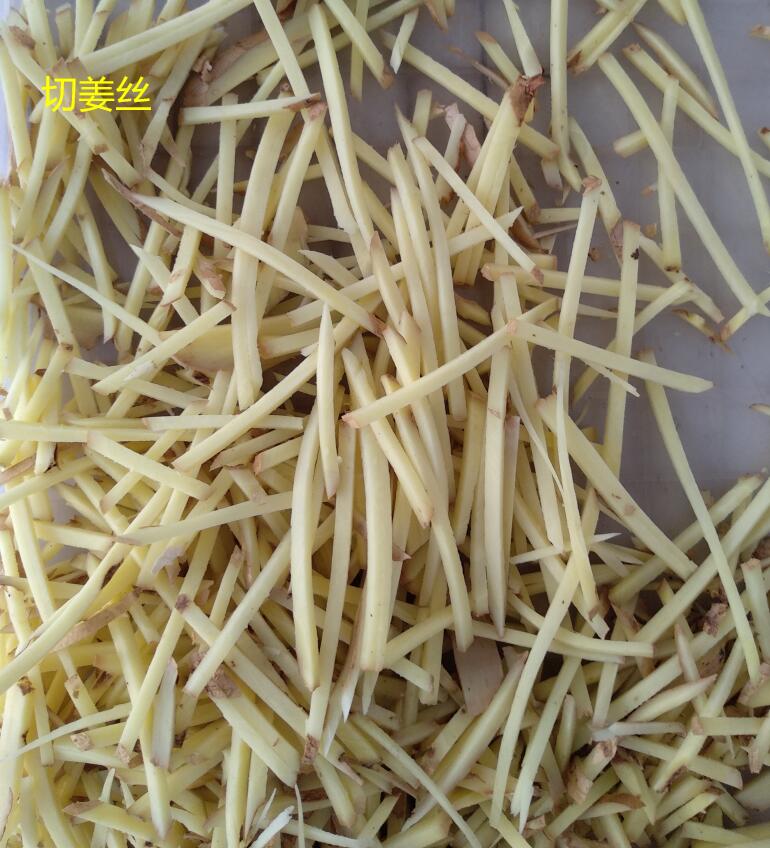 生姜切片切丝机 鲜笋 酸笋切片切丝,胡萝卜切细长丝,莲藕切细长丝,切割产品表面光滑,整齐。