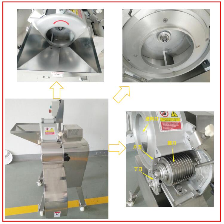 名称:CHD100型果蔬切丁机/切块机 (整机不锈钢材质)切丁大小可换刀改变。