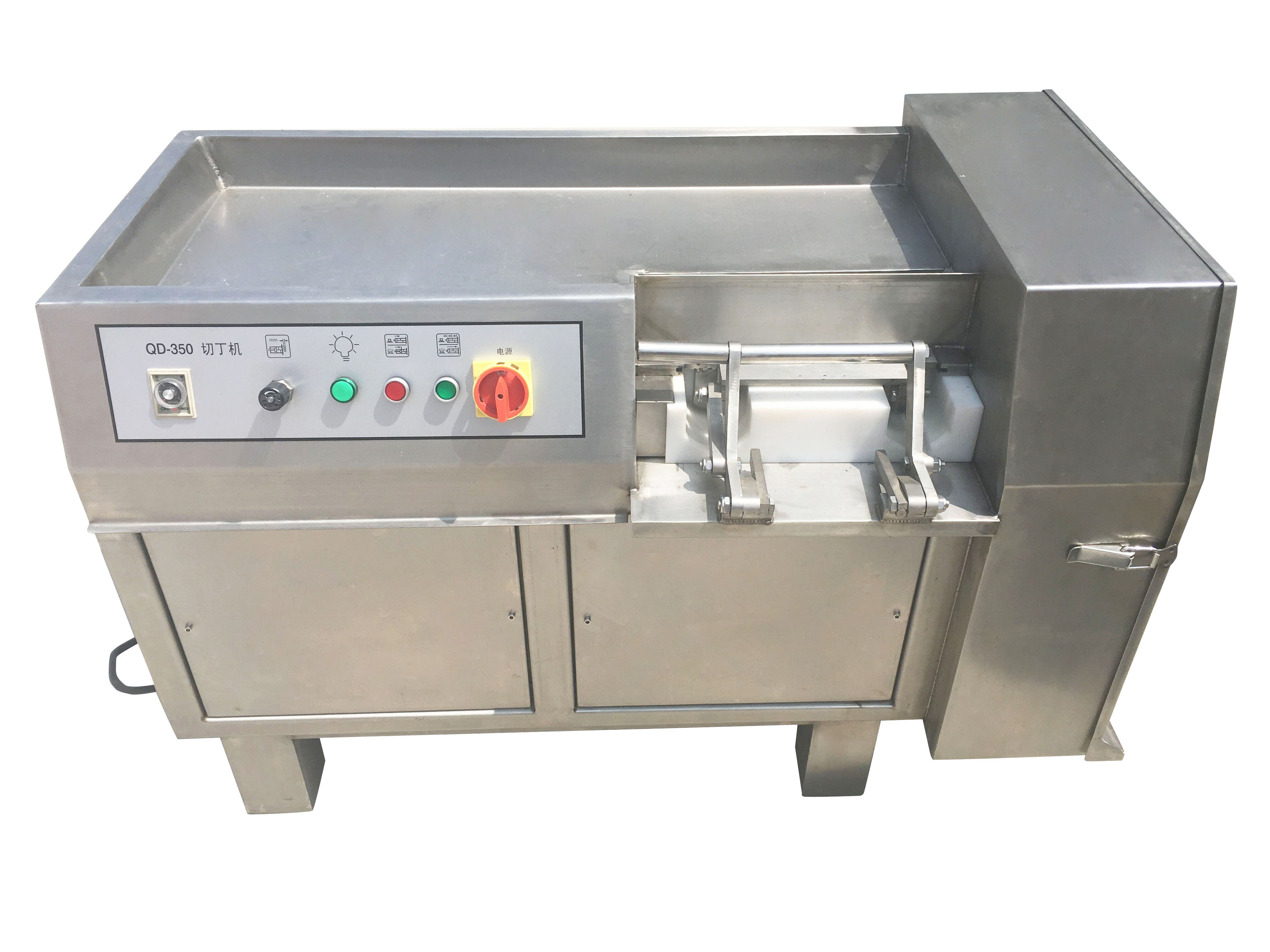 能将鲜肉、微冻肉、一次切成丁块 专门用于 猪肉 羊肉 牛肉切丁或切块,有不同规格的刀具,切丁速度快,成型好,切丁均匀,是食品厂,肉食加工单位首选设备。